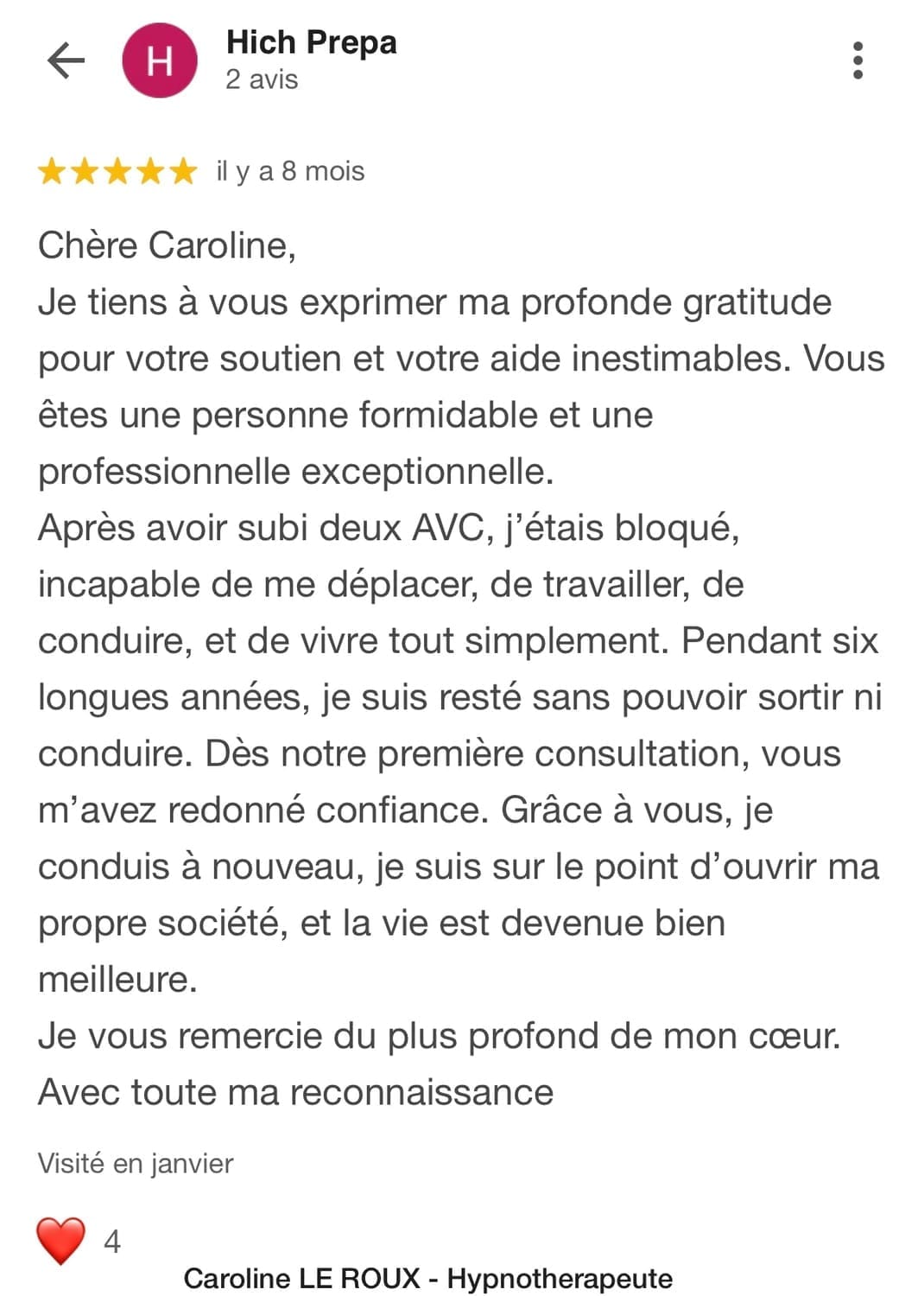 Pierre, 43 ans, se retrouvant bloqué chez lui suite au covid, se sentant seul pour faire face à ces difficultés, proche du passage à l'acte pour se suicider, m'appelle pour me demander de l'aide ne sachant pas si je pouvait l'aider. Alors je lui propose de tenter des séances à distance. Ce fût avec grand étonnement que je m'aperçu que l'hypnose fonctionnait très bien à distance, voir dans certains cas encore mieux. Pierre est sorti de sa dépression, il a quitter sa femme qui lui faisait du chantage affectif pour abuser de lui financièrement et à déménagé en Guadeloupe. Aujourd'hui il respire !